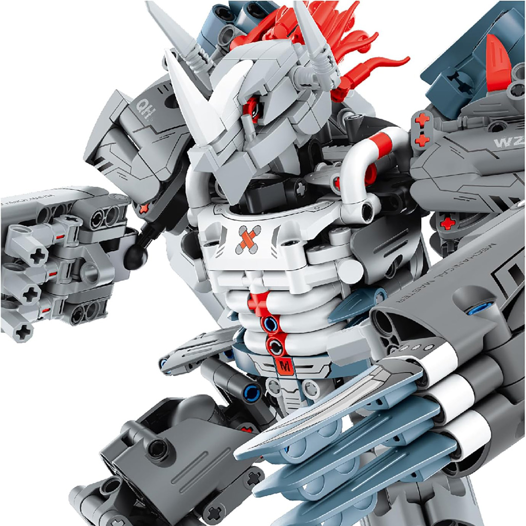 Composto por 965 peças, este impressionante kit permite montar um robô de combate articulado, repleto de detalhes futuristas, armas integradas e visual robusto.